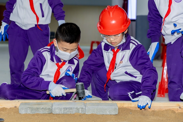 正在合做搭建区,学生们以小组为单元开展微景不雅创做。从丈量放线、地形塑制到动物栽种、建建搭建,每个步调都需要精准共同。有的小组为确保回字形透水砖、青石板可以或许平整,频频用标尺校准;有的团队为旱吸合适外形要求,动物选择得当,进行频频比对。一位学生的“专业” —— “这里的景不雅石需要倾斜一些,才更合适山的外形”,博得了火伴们的认同。专注的神气、严谨的立场,恰是工匠正在少年身上的萌芽。